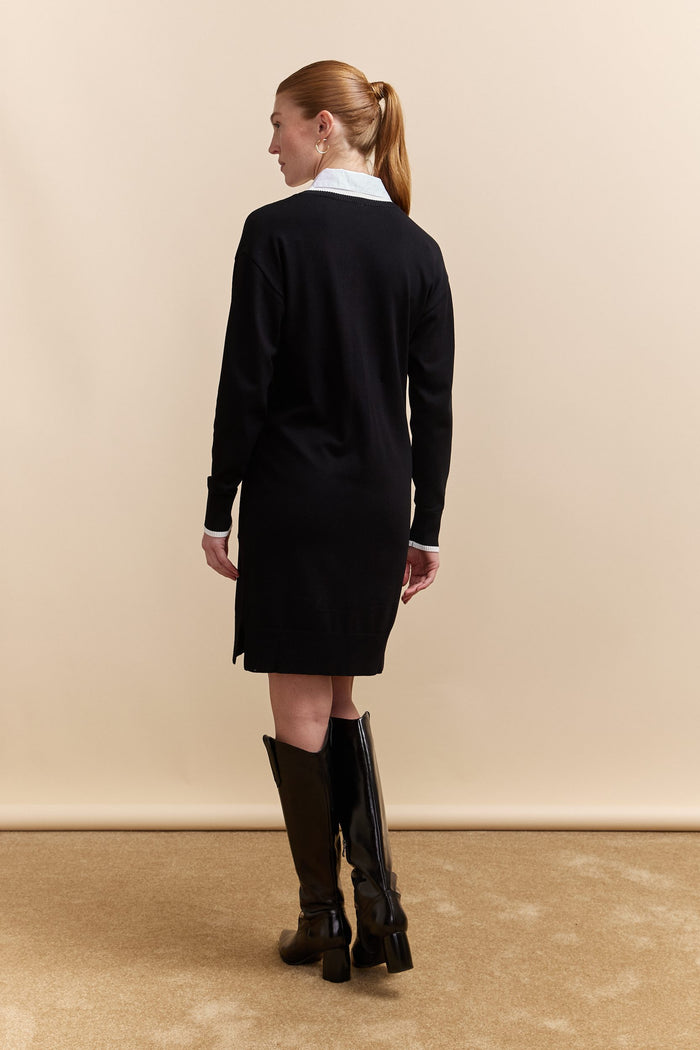 Turn heads with this chic 2-in-1 knitted dress! The cozy knit fabric makes for perfect daytime wear while the tailored white collar adds a sophisticated touch, creating an effortless blend of relaxation and elegance. Perfect for your busy days out or casual evenings.