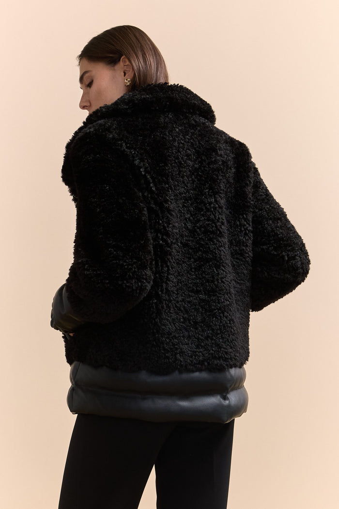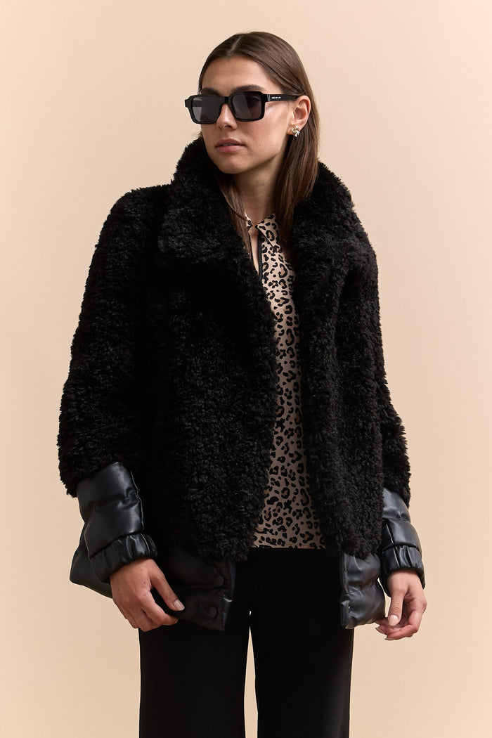 Cocoon yourself in style with this boucle and quilted leather coat! The plush texture offers warmth and sophistication, while the sleek leather details add a modern edge. Perfect for chic layering, it transforms any outfit into a statement.
