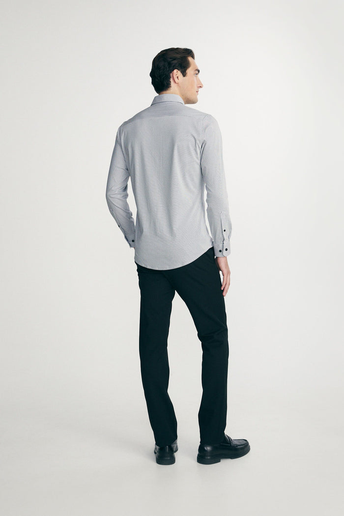 Experience refined comfort with this extra-slim fit checked shirt, crafted from breathable fabric. Perfectly paired with stretch dress pants, it combines modern style with easy-care convenience for a consistently polished look.