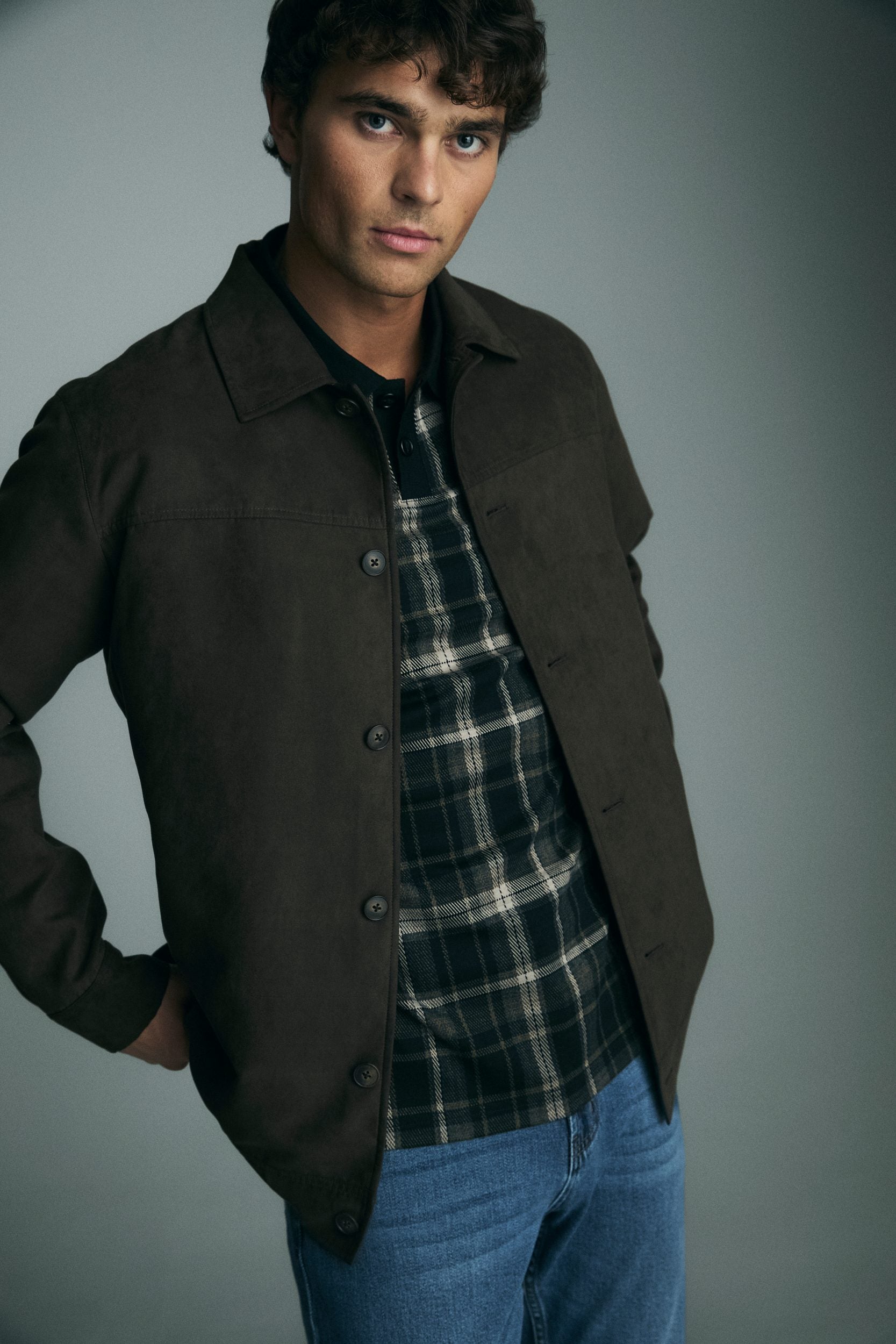 Elevate your casual wardrobe with this men's comfort fit faux suede overshirt, offering a contemporary twist on relaxed styling. Designed with a flexible structure, it ensures ease of movement while maintaining a refined profile. Ideal for layering, this piece adds effortless sophistication to a range of looks.