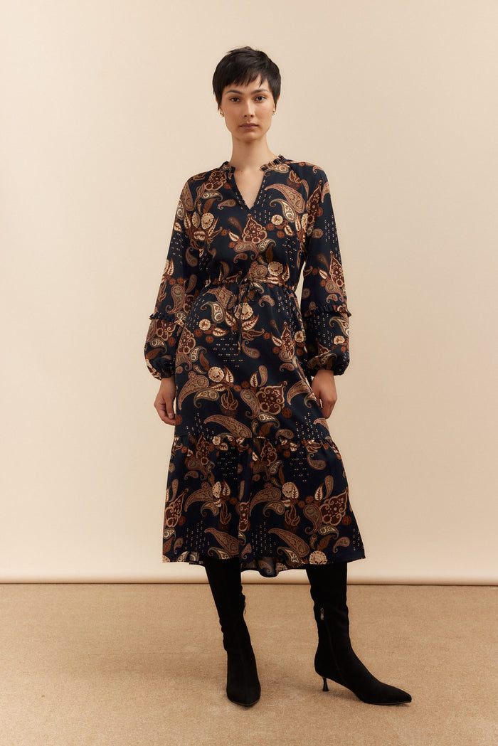 Discover timeless elegance with our fluid printed dress, designed for the discerning fashionista. The intricate patterns captivate and enchant, while the drawstring waist accentuates your silhouette with grace. Crafted from premium, flowy fabric, it offers both comfort and sophistication, making it the perfect choice for any occasion.