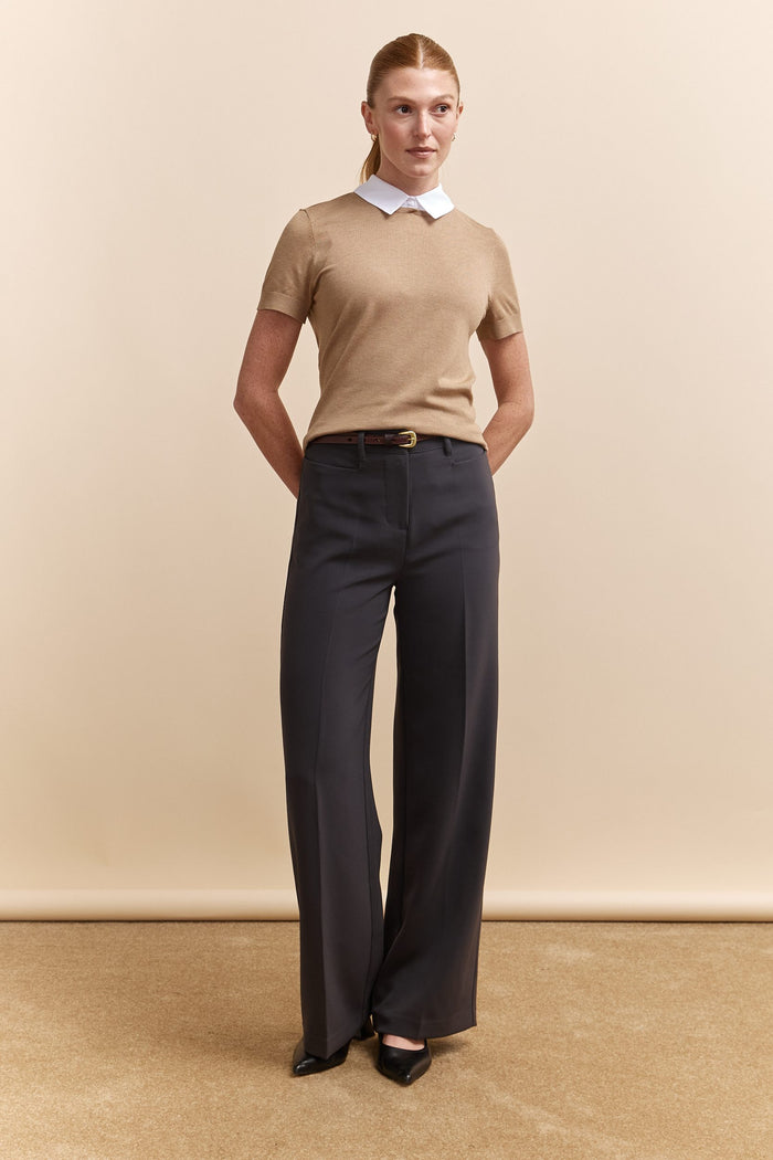 Meet the perfect blend of sophistication and comfort, these black Slim Palazzos are your new wardrobe staple. Crafted with a tailored finish, they offer a flattering high waist and streamlined silhouette that elongates the legs. Designed for the modern woman, these trousers seamlessly transition from day to night, ensuring you stay chic and confident. Made from a premium material, they guarantee all-day comfort and durability, making them ideal for both power meetings and evening soirees. Pair with a lacy top for that extra touch of elegance.