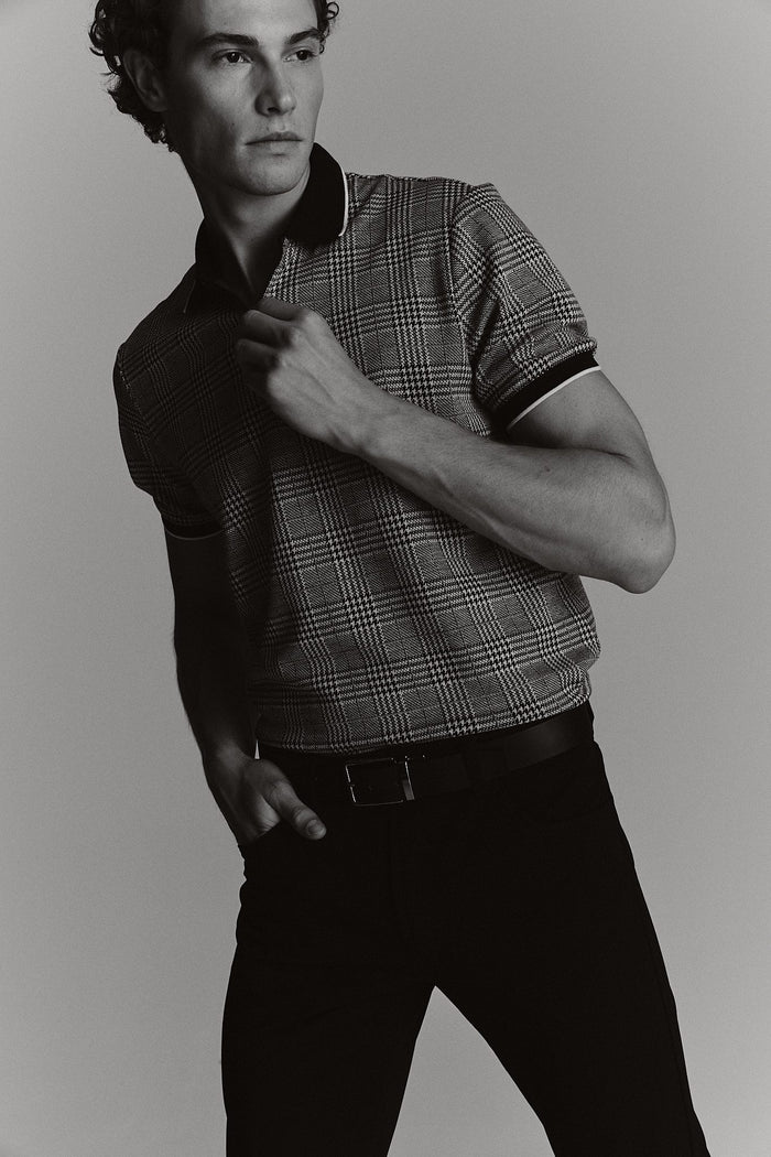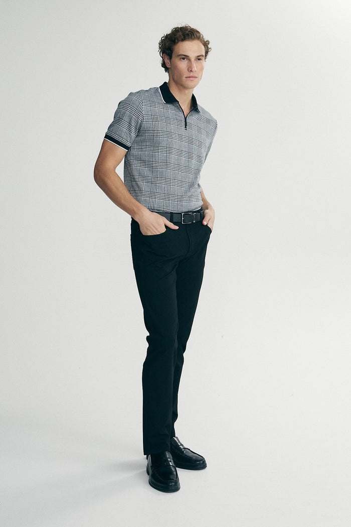 Discover refined confidence with our men's houndstooth zip polo. The structured fit complements a modern shape, while the fine detailing adds a touch of sophistication to any outfit. Perfect for a seamless transition from day to night.