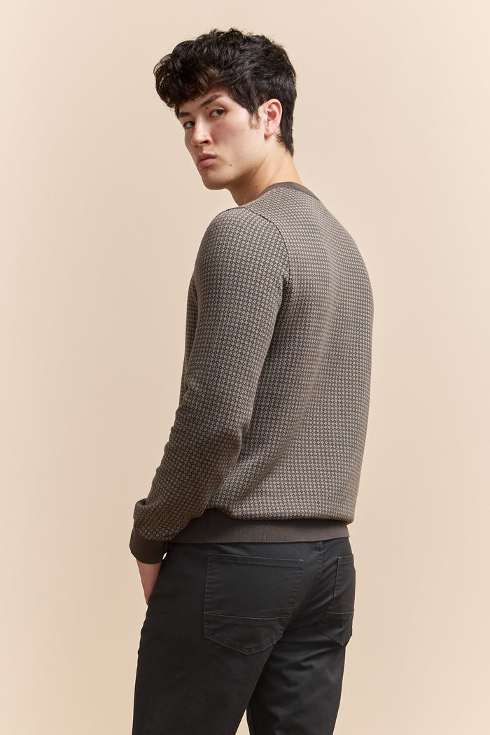 Revel in the stylistic charm and superior comfort of our jacquard crew neck sweater! Crafted from premium fabrics, this sweater enchants with intricate patterns and a rich texture. Ideal for layering, its versatile design transitions seamlessly from a casual day out to an evening gathering. Appreciate the snug fit that flatters any silhouette and discover the appealing balance of fashion and function.