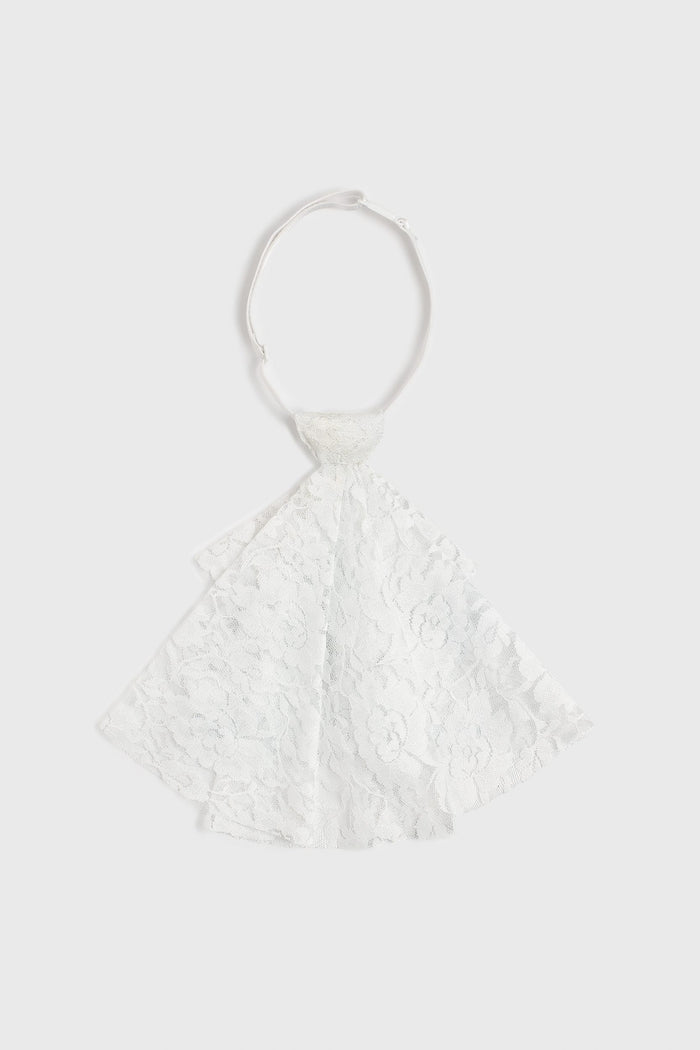 This lace jabot reimagines a classic detail with a touch of contemporary femininity. Its delicate, airy texture adds character to your outfits while maintaining understated elegance. Worn under a blazer or over a blouse, it becomes a distinctive accent that evokes both refinement and originality. A signature piece to elevate your style with finesse.