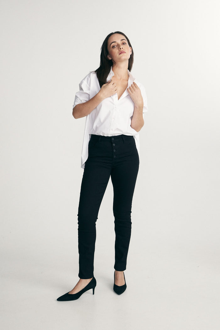 Discover comfort with a polished edge! This exquisitely tailored shirt, crafted from luxurious mercerized cotton jersey, is designed for those who value both style and refinement. The silky smooth fabric caresses the skin, offering a breathable and soft touch, ideal for all-day wear. Pair it with a chic scarf for an elegantly complete ensemble.