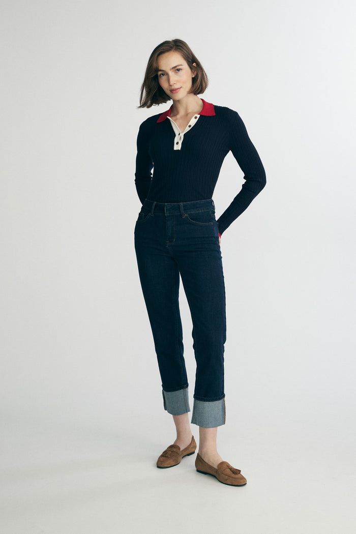 This mock neck jersey top offers a refined blend of comfort and style, perfect for creating a sleek look with tailored pants or layering under a structured blazer. Engineered with a flattering fit, it provides versatile wear for contemporary women's wardrobes.