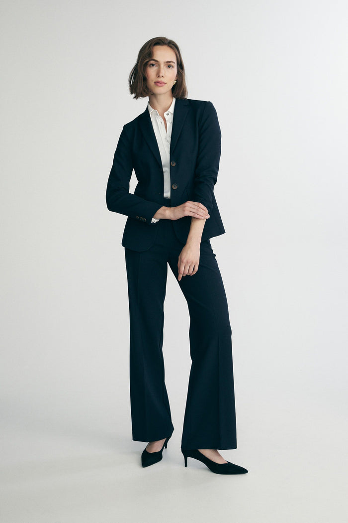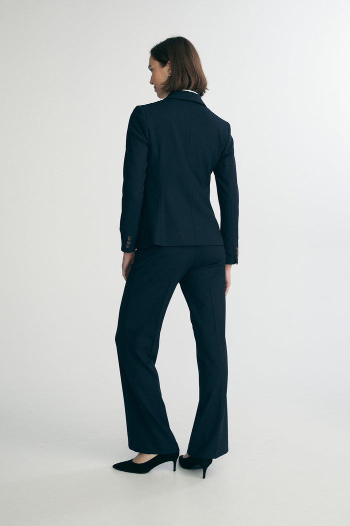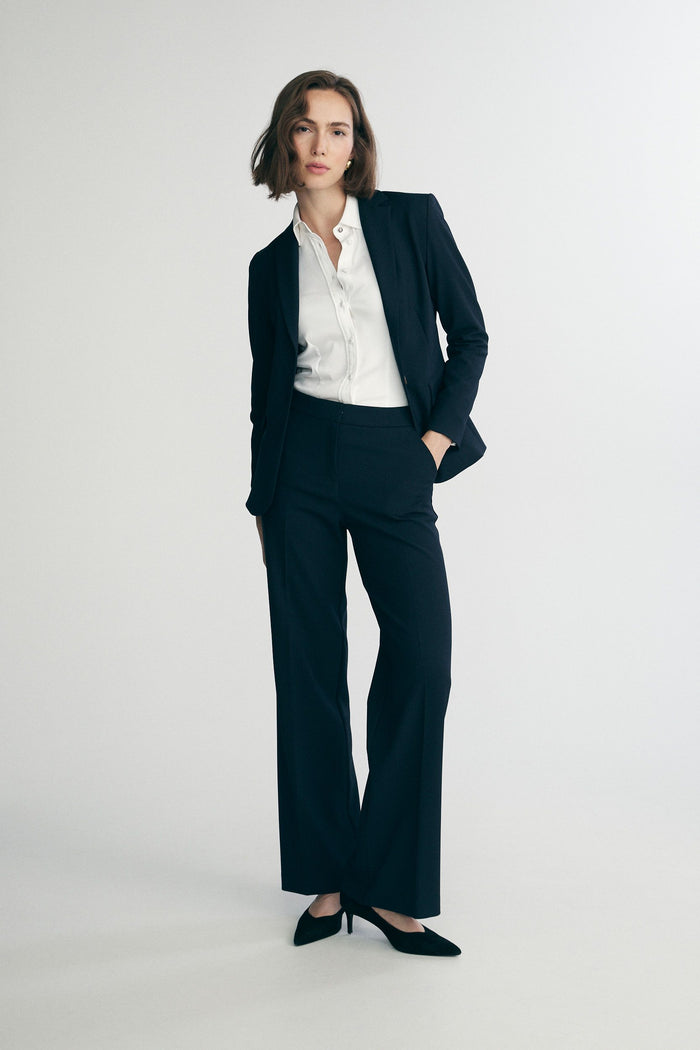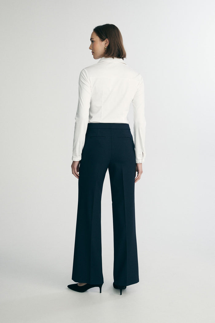 Tailored to perfection, these modern pants feature TRISTAN’s signature wool blend for effortless drape and comfort. The high-waisted design highlights the figure, making them ideal for pairing with fitted blazers or blouses for a refined ensemble.