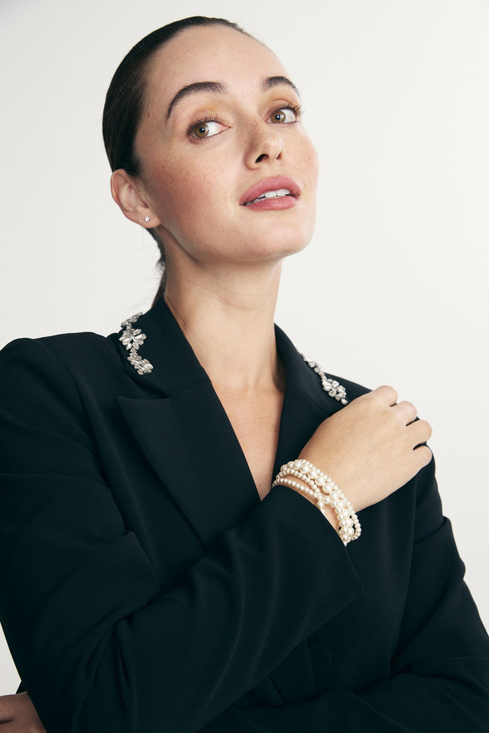 Elevate your look with this elegant pearl bracelet. Featuring multiple strands of lustrous pearls, this accessory adds a refined touch to any outfit. Perfect for both everyday wear and special occasions, it brings a sophisticated, timeless elegance to your ensemble.