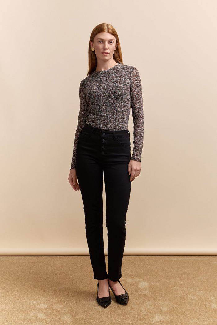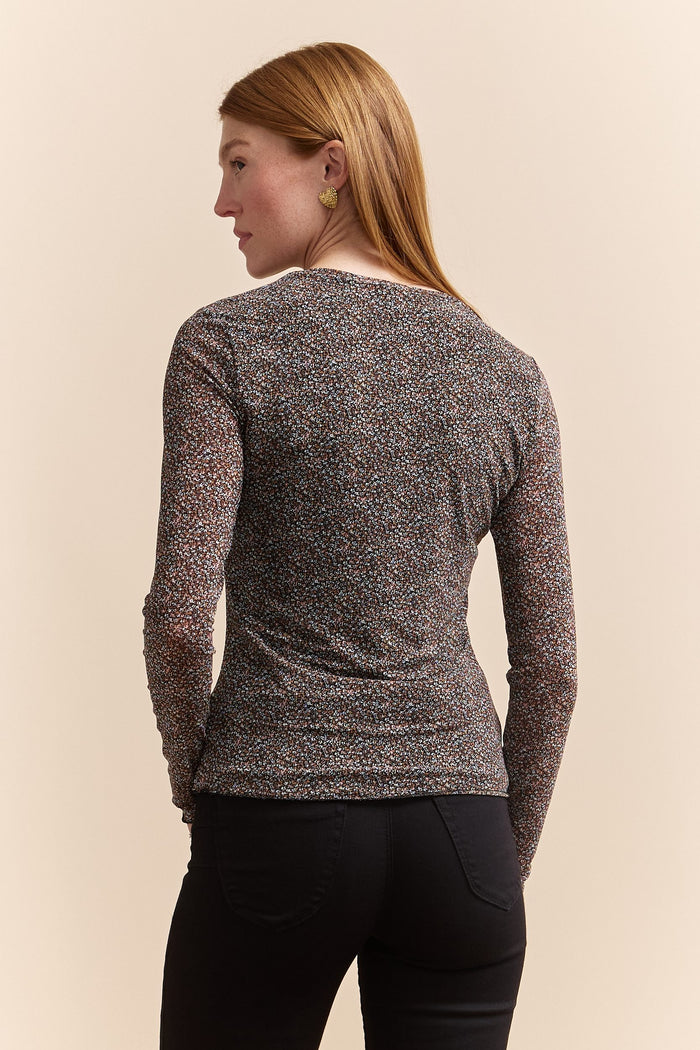 Meet your new go-to piece! This printed micro mesh top adds a subtle pop of style to any outfit. Its soft, breathable fabric feels gentle against your skin, enhancing comfort throughout the day. Pair with your favorite jeans for a sleek and stylish look.