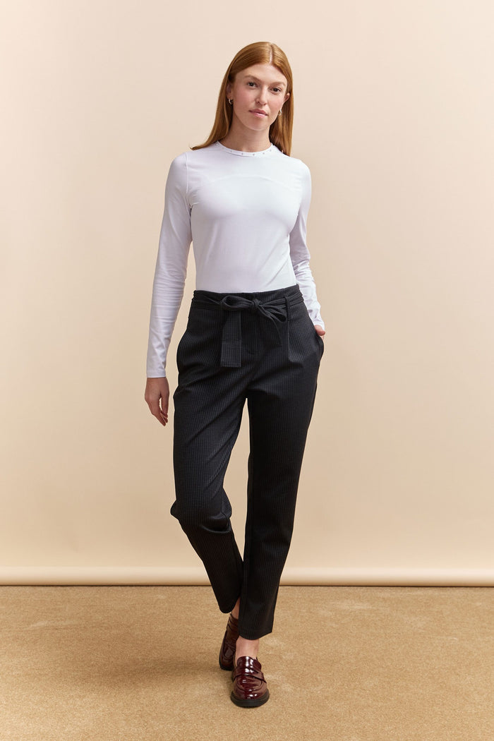 These sleek ponte pants redefine comfort and style with their thoughtful design and flattering sash tie. The high-quality fabric ensures a flattering fit, perfect for both office elegance and casual outings, offering a versatile addition to your wardrobe.