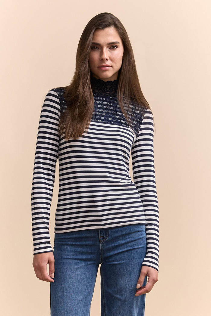 Striped top with lace