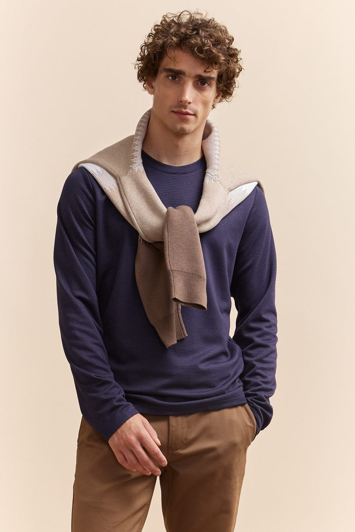 Incredibly soft and stylish, this Rib Details Jacquard Top promises unmatched comfort. Crafted from breathable material, its perfect for any occasionbe it a casual outing or a cozy day indoors. Pair it with chinos for a laid-back yet polished look.