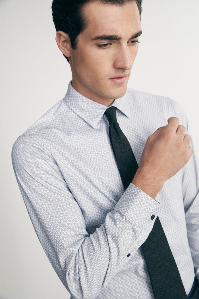 Discover this two-tone grey tie that perfectly complements a refined ensemble. Crafted from high-quality fabric, it pairs effortlessly with dressed-up outfits, enhancing their appeal with a touch of sophistication ideal for professional settings or formal occasions.