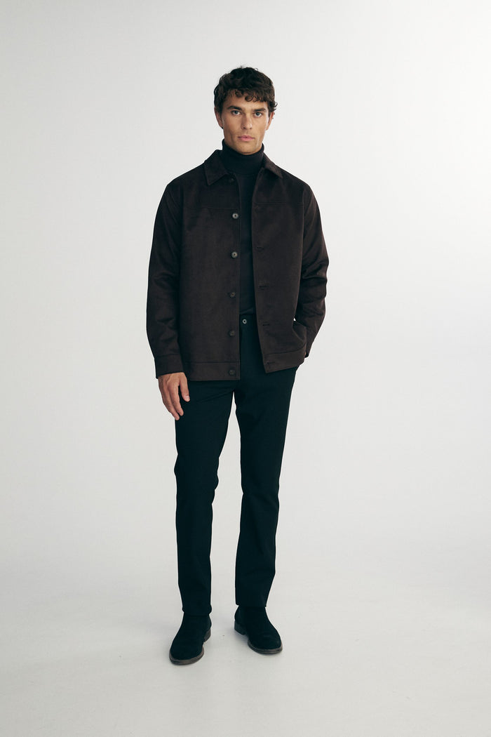 The faux suede overshirt, known for its soft and luxurious texture, perfectly blends style and practicality. Designed to adapt effortlessly to various settings, it offers a modern layering option while ensuring exceptional comfort. Its carefully crafted material is easy to care for and adds a sophisticated touch to any refined outfit.